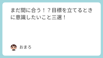 まだ間に合う!?目標を立てるときに意識したいこと三選!