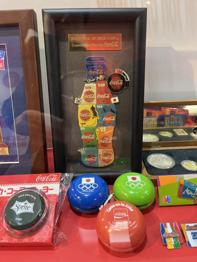 - 圧巻のコレクション: ペットボトルキャップや、歴代のおまけピンバッジが「コンプリート状態」で展示されています。