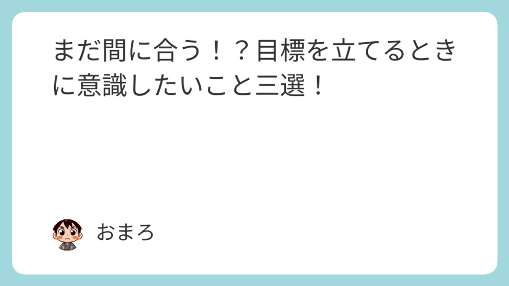 今回は、簡単ではありますが、私が目標を立てるときに意識していることをご紹介しました。