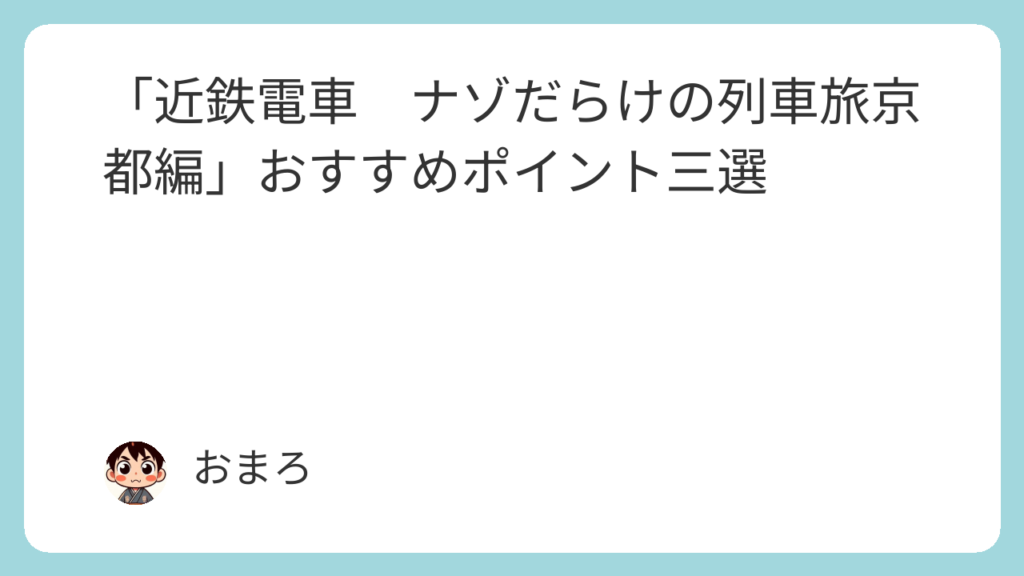 年末年始にもぴったりの「近鉄電車 ナゾだらけの列車旅 京都線編」おすすめポイント三選です。