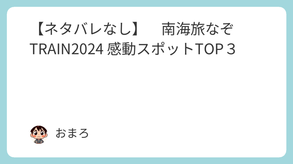 今回は、南海旅なぞTRAIN2024の感動したスポットTOP3を独断と偏見で選びました。
