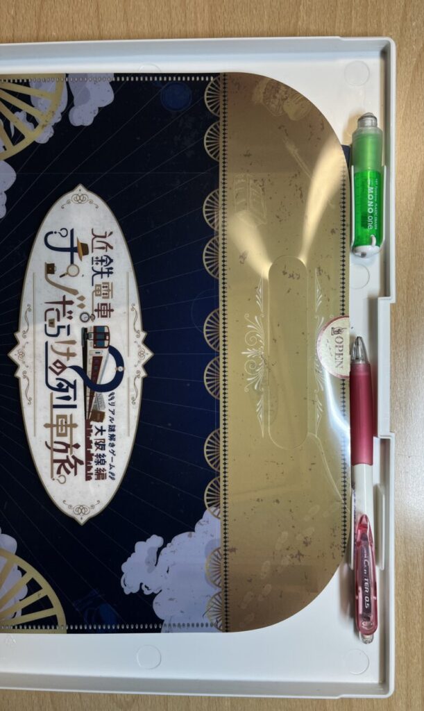 • キットの紛失を防ぐ「収納力」:謎解きキットには、細かいカードや地図などのギミックがたくさん封入されています。このボードなら、中を開いてキットをそのまま放り込んでおけるので、移動中もバラバラにならず、紛失の心配もありません。