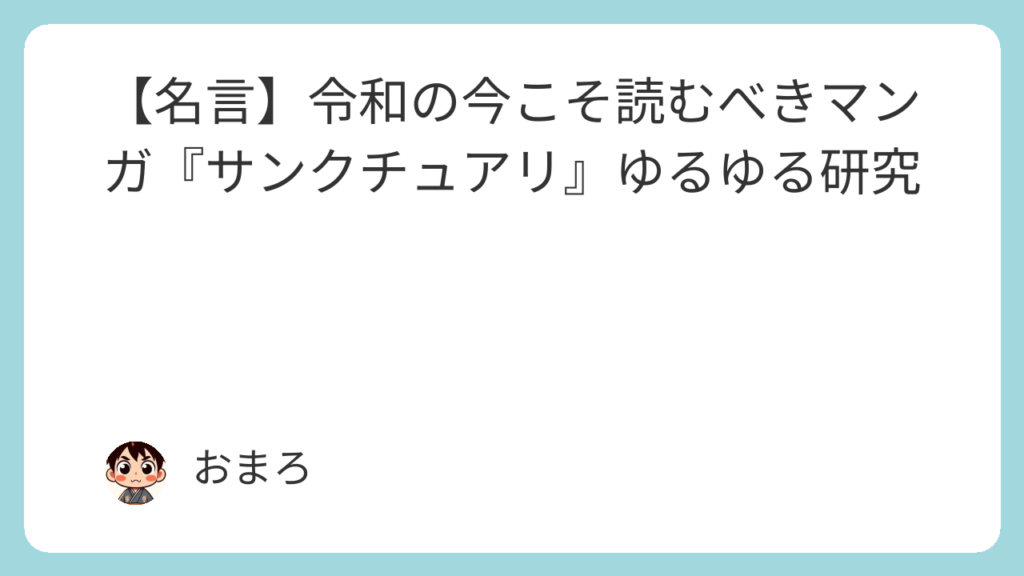 今回は、「令和の今こそ読むべき」と題しまして、『サンクチュアリ』を読んで、感銘を受けた名言や「令和の今こそ読むべき」と感じたポイントについて、数回に分けて研究していきます。