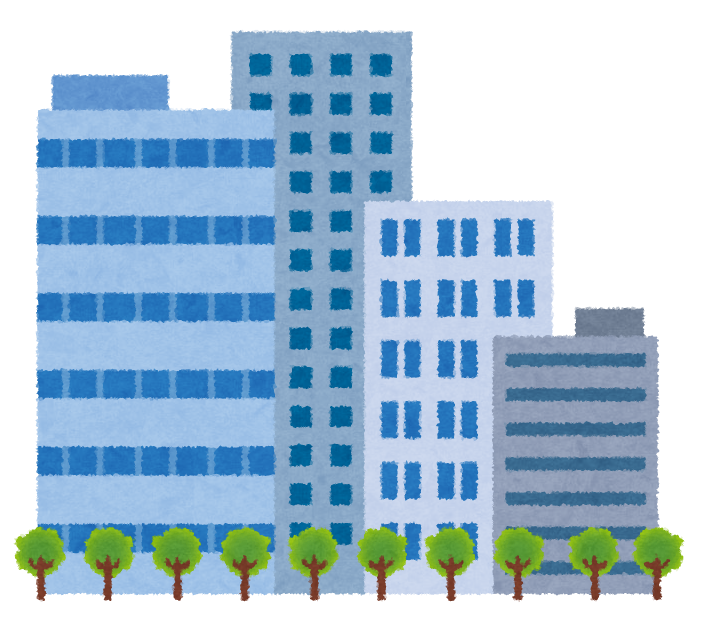 空撮をしたかのような、ビルとマンションの屋上一棟一棟が手描きです。