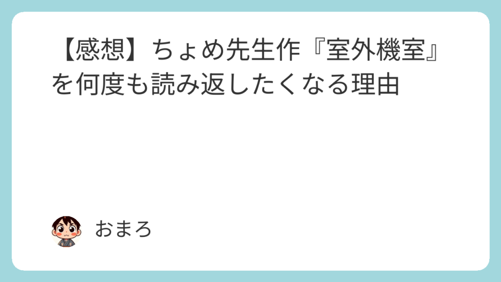 【感想】ちょめ先生作『室外機室』を何度も読み返したくなる理由